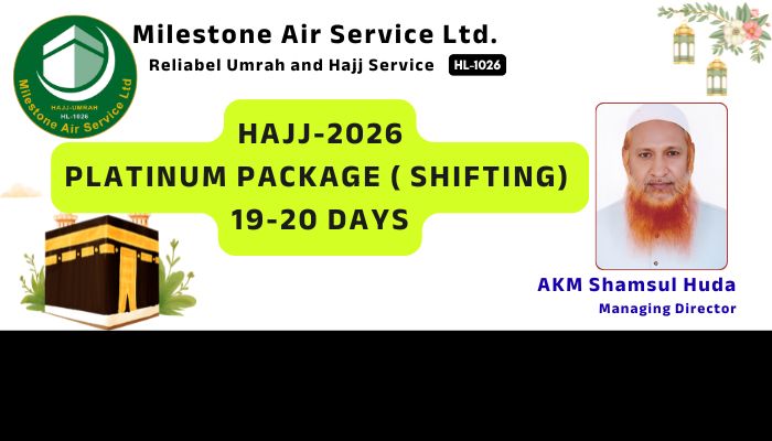 Dear valued customer / traveler, all of our packages and services can be booked online through our technical partner's mobile app platform named "Traveller Self Care". Using our agency code ‘HUDAMILESTONEHAJ’ you can enter the app. In the app you can create a user ID using your cell phone number or email address. With this mobile application platform you can avail packages and services, make payments, get auto generated invoice & receipt, book air ticket, hotel, provide feedback, and get certificates.